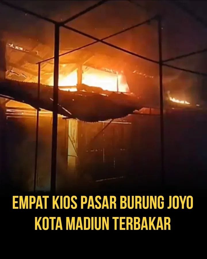 Kota Madiun, Garudasiber.net – Sejumlah kios di Pasar Burung Srijaya atau biasa dikenal Pasar Njoyo terbakar pada Senin (27/01/2026) malam. Upaya pemadaman oleh petugas Satpol PP dan Damkar Kota Madiun mengerahkan 3 unit mobil pemadam kebakaran dengan dibantu 1 unit mobil tangki air dari BPBD Kota Madiun. Kobaran api cepat membesar lantaran banyak sangkar maupun kayu di dalam kios tersebut.
