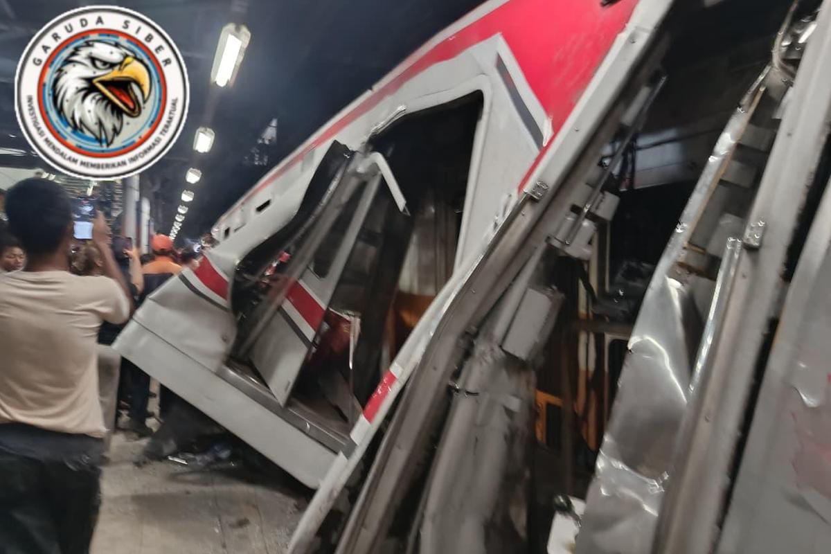 Bekasi Timur, Garudasiber.net – Senin Malam 27/4/2026, Sekira Jam 20.52 WIB Peristiwa tabrakan antara rangkaian KRL Commuter Line dan kereta api jarak jauh memicu kepanikan di area stasiun. Insiden tersebut terekam dalam sejumlah video yang beredar dan memperlihatkan kondisi mencekam di lokasi kejadian.