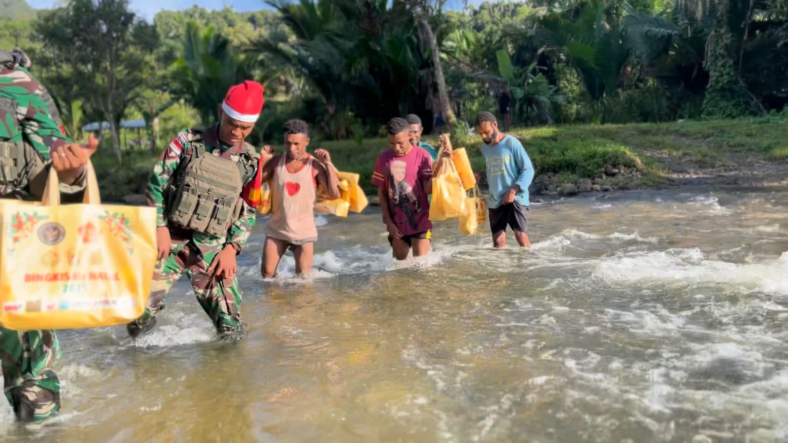 Papua, Garudasiber.net – Meski dihadapkan pada cuaca yang kurang bersahabat serta medan dan akses jalan yang terbatas, semangat berbagi dan kebersamaan prajurit Yonif 121/Macan Kumbang tidak surut dalam memaknai Hari Raya Natal. Di tengah pelaksanaan tugas operasi pengamanan perbatasan, Yonif 121/MK tetap menggelar kegiatan Natal dengan penuh kreativitas dan inovasi sebagai wujud kepedulian serta pengabdian kepada masyarakat. 27/22/25