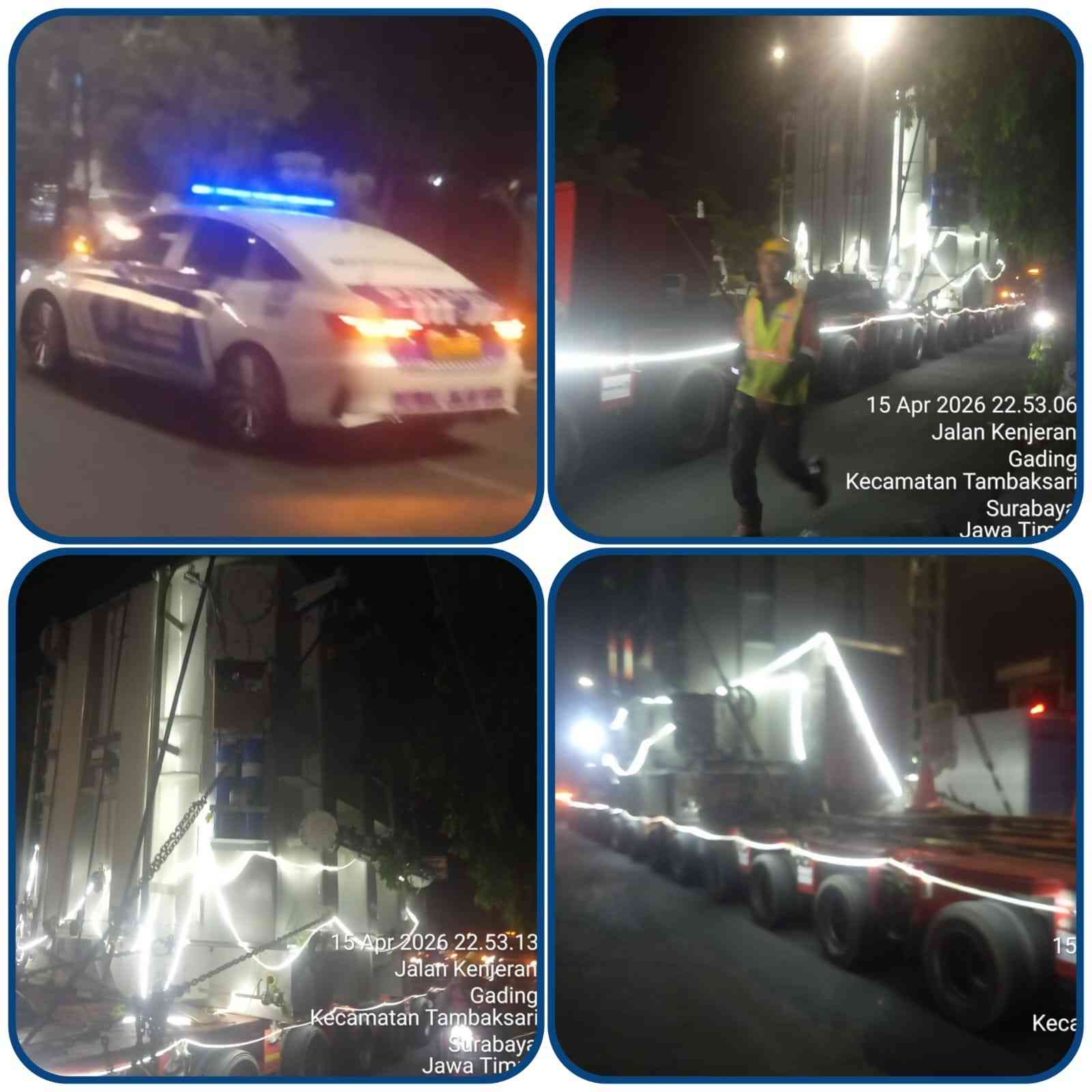 SURABAYA, GarudaSiber.net – Pada Rabu malam (15/4/2026) pukul 23.00 Terpantau Sebuah Truk bermuatan Trafo super besar melintas di jalan Kenjeran.
