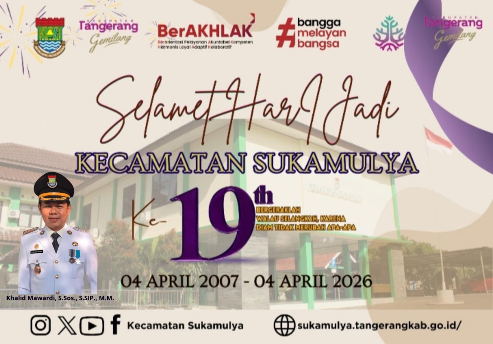 Sukamulya, GarudaSiber.net – Pemerintah Kecamatan Sukamulya, Kabupaten Tangerang, menggelar hari jadi kecamatan yang ke-19 dengan cara sederhana. Acara yang jatuh pada tanggal 04 April 2026 ini di peringati pada Senin, 6 April 2026.