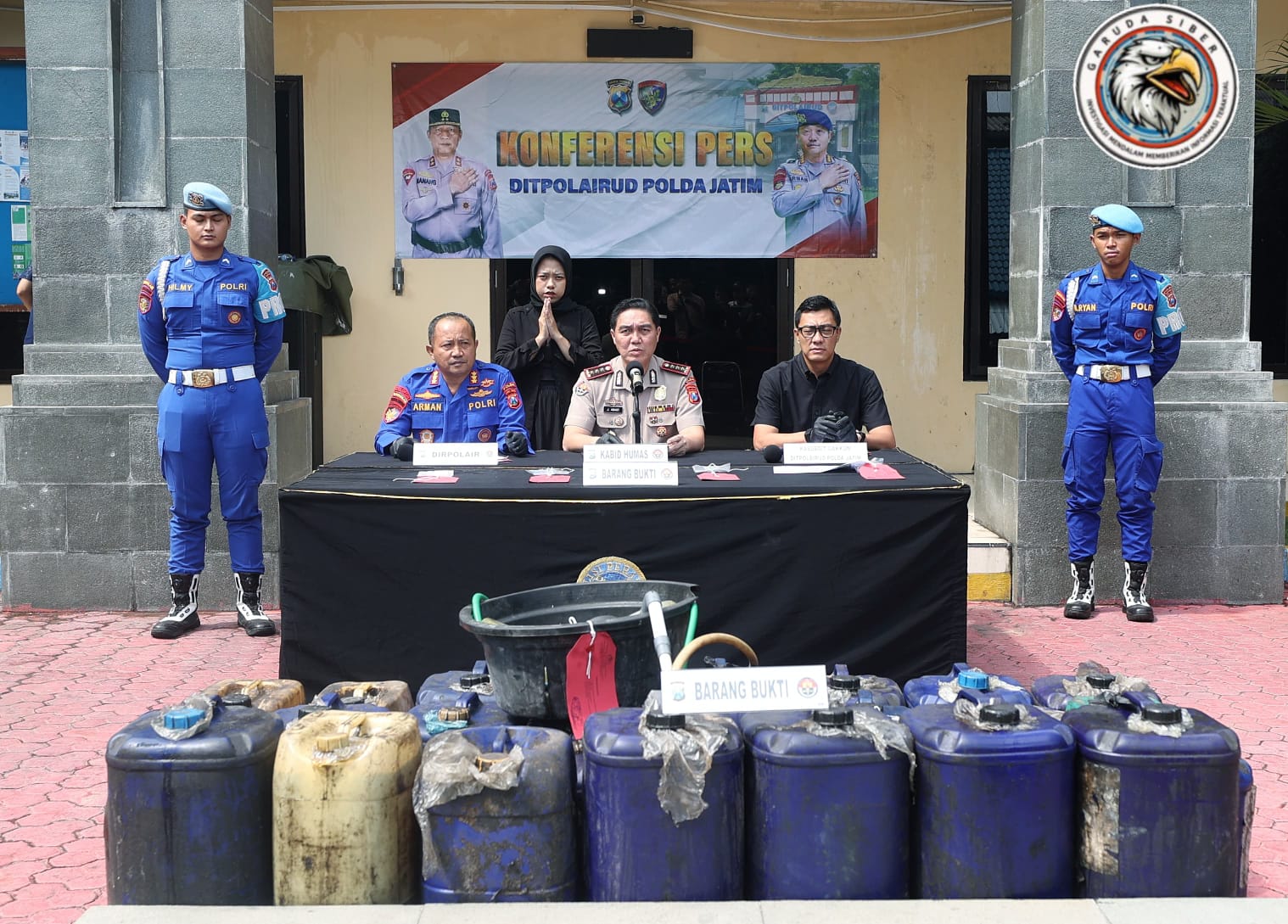 Direktur Polairud Polda Jatim, Kombes Pol Arman Asmara Syarifuddin menjelaskan pengungkapan kasus ini berawal dari informasi dari masyarakat terkait pengiriman BBM subsidi diduga tanpa dokumen resmi dari Blora, Jawa Tengah menuju Pangkalan Bun, Kalimantan Tengah, pada Senin (20/4/2026).