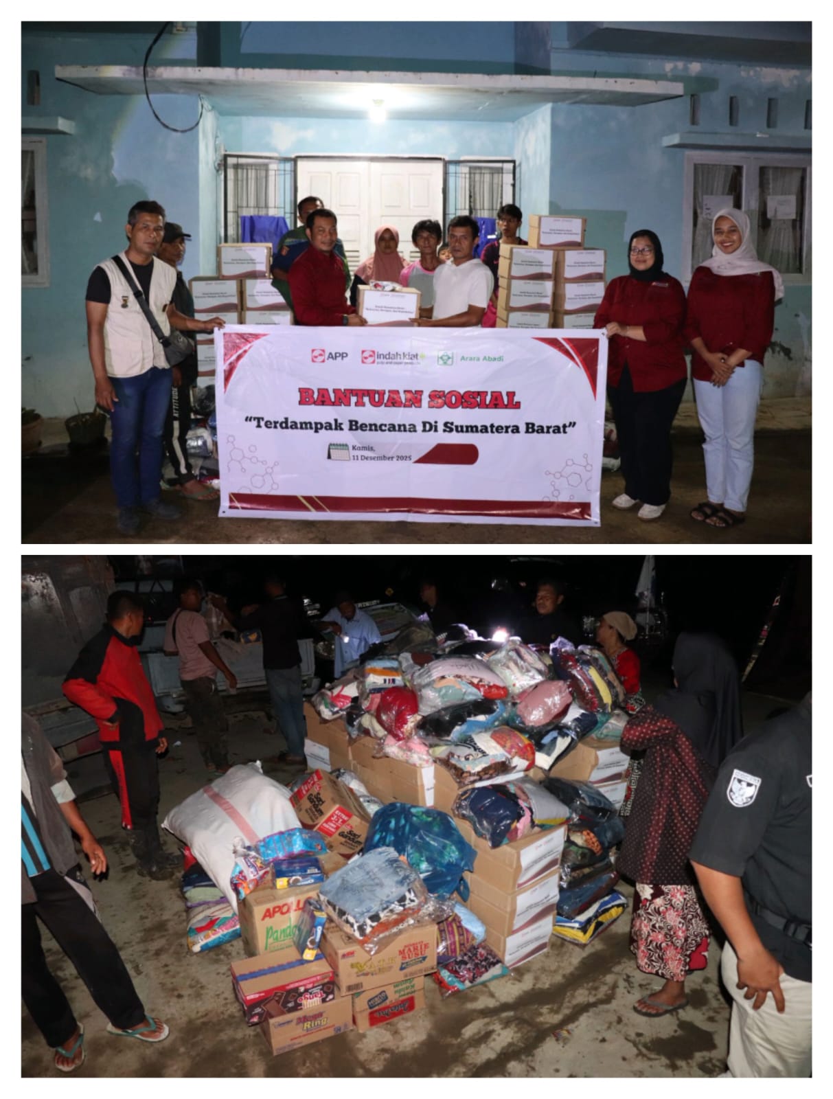 “Sebagai perusahaan yang berada di Provinsi Riau dan berdekatan dengan Provinsi Sumatera Barat dan Sumatera Utara Indonesia, manajemen dan seluruh karyawan perusahaan merasa terpanggil dan turut prihatin serta merasakan beban berat dan menghadapi kesulitan yang dihadapi masyarakat yang terdampat bencana,” tutur Direktur Arara Abadi, Edi Haris MZ.