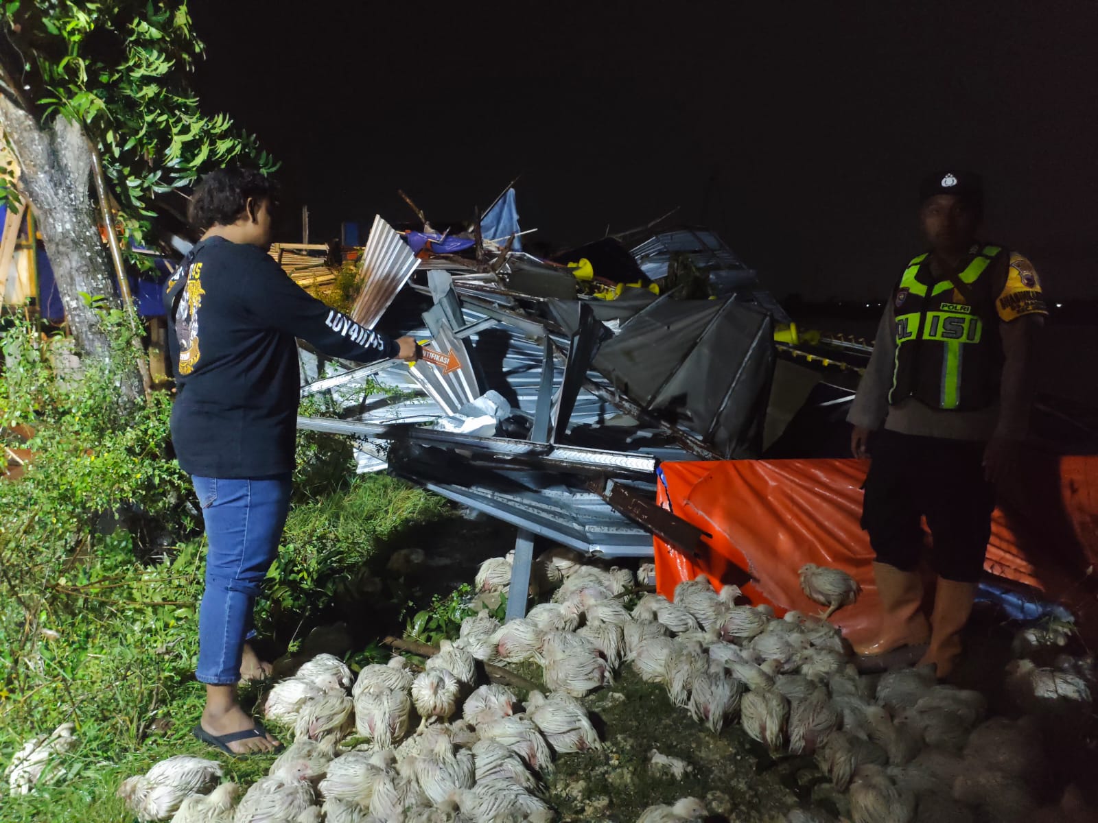 Respons Cepat Polisi Tangani Puting Beliung di Sukolilo, 4 Kandang Ayam Hancur dan Puluhan Ribu Ternak Terdampak