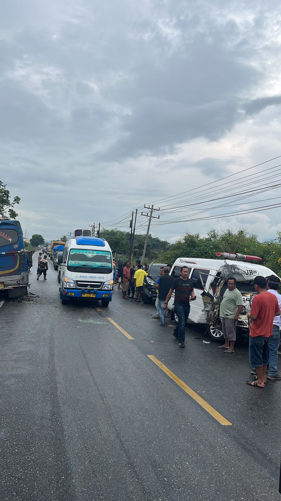 Iptu Janitra Giri Satya menjelaskan peristiwa berawal Mobil Ambulance No Plat BK-8673-XL yang di kemudikan oleh Hidupta Purba (40) warga Desa Jinabun, Kecamatan Hutabuloh, Kabupaten Karo, yang berpenumpang 4 (empat) orang. Pada saat itu, kondisi cuaca gerimis.