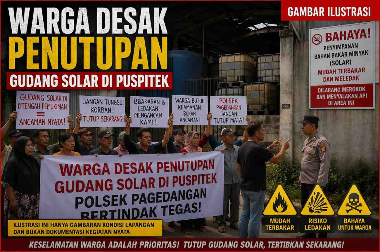 Kabupaten Tangerang, GarudaSiber.net – Keresahan warga terkait dugaan kembali beroperasinya gudang penyimpanan bahan bakar minyak (BBM) jenis solar di kawasan perumahan Puspitek, Kecamatan Pagedangan, kian memuncak. Masyarakat secara tegas meminta agar lokasi tersebut segera ditutup demi keselamatan lingkungan.